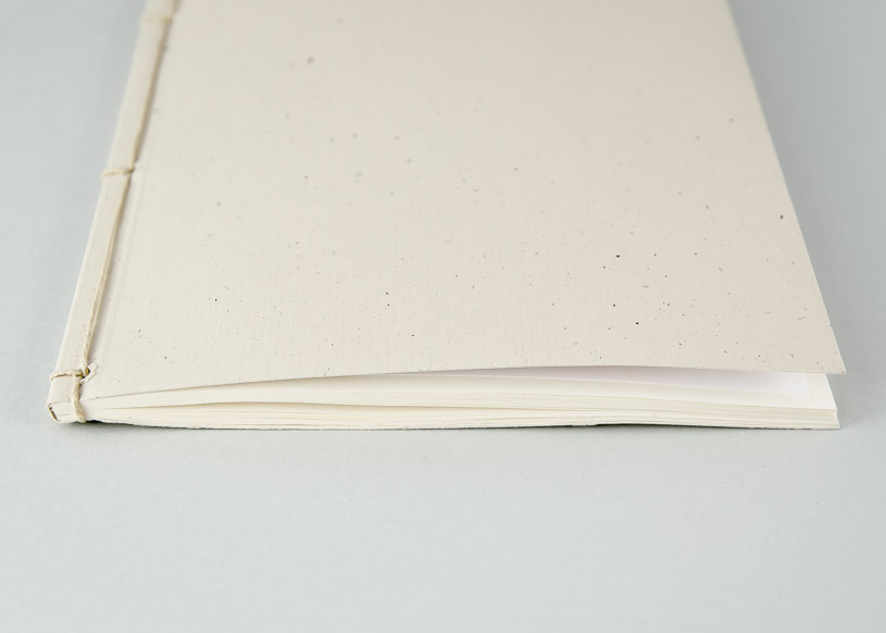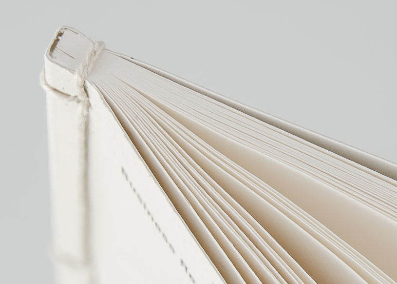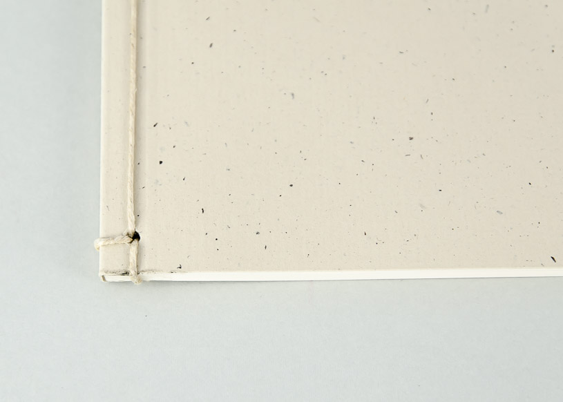 Nach der industriellen Klebebindung werden im Rücken 4 Löcher gebohrt, die Schnur eingezogen und verknüpft.