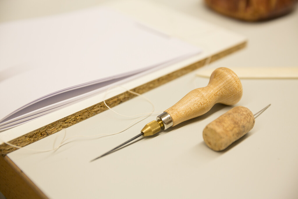 Mit Leim, Nadel und Faden ging es ans Binden der Skizzenbücher mit Sina Giovanoli und Rahel Scheufele, während Christian Burkhardt PDF-to-Book Software live demonstrierte.